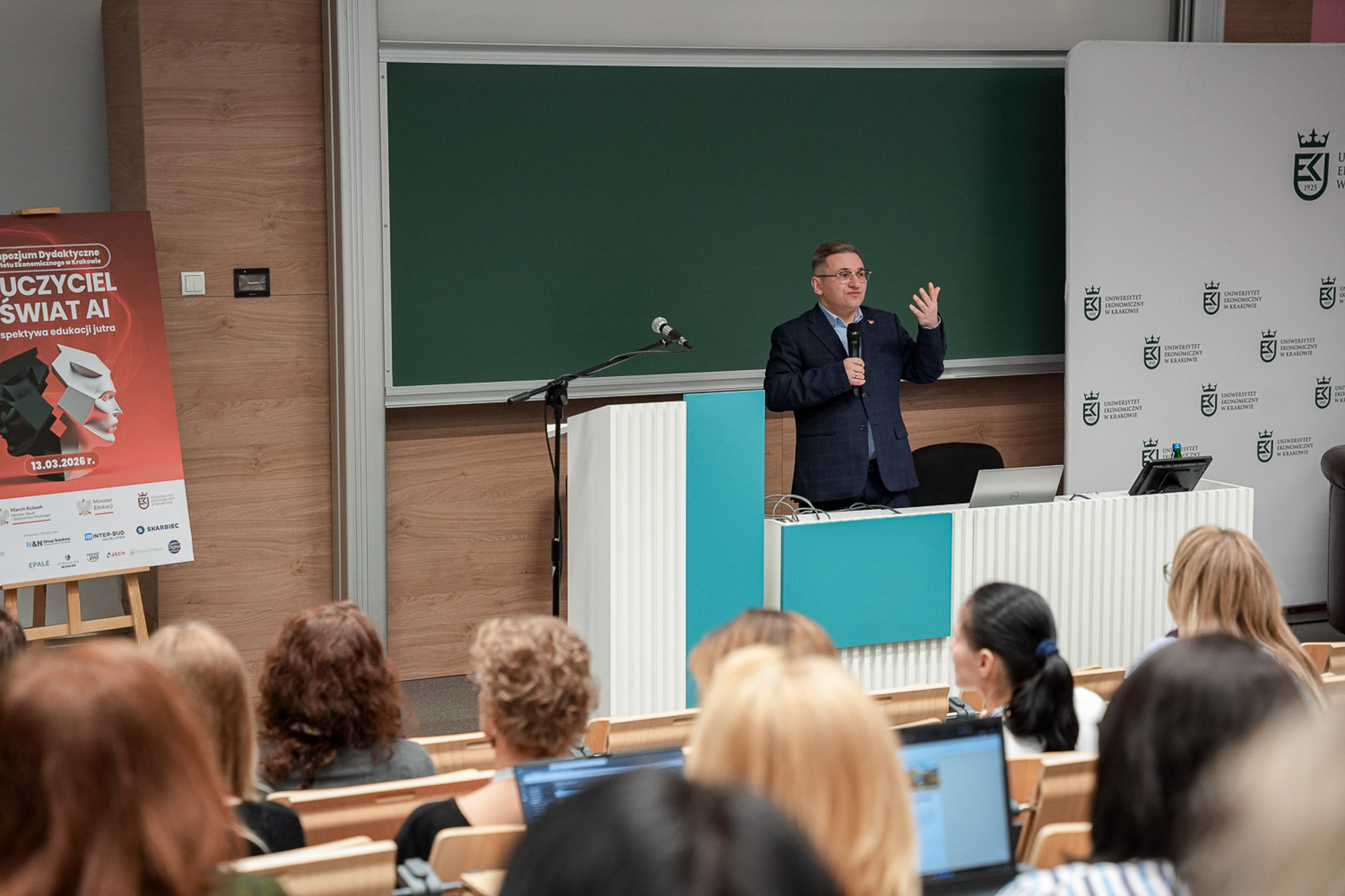 Wydarzenie zainaugurował JM Rektor prof. Bernard Ziebicki, zwracając uwagę na konieczność adaptacji metod kształcenia do dynamicznie zmieniającej się rzeczywistości. Pomysłodawczyni Sympozjum, Prorektor ds. Kształcenia i Studentów prof. Małgorzata Tyrańska, w swoim powitaniu zaznaczyła, że w świecie algorytmów to człowiek pozostaje centralnym punktem procesów dydaktycznych.