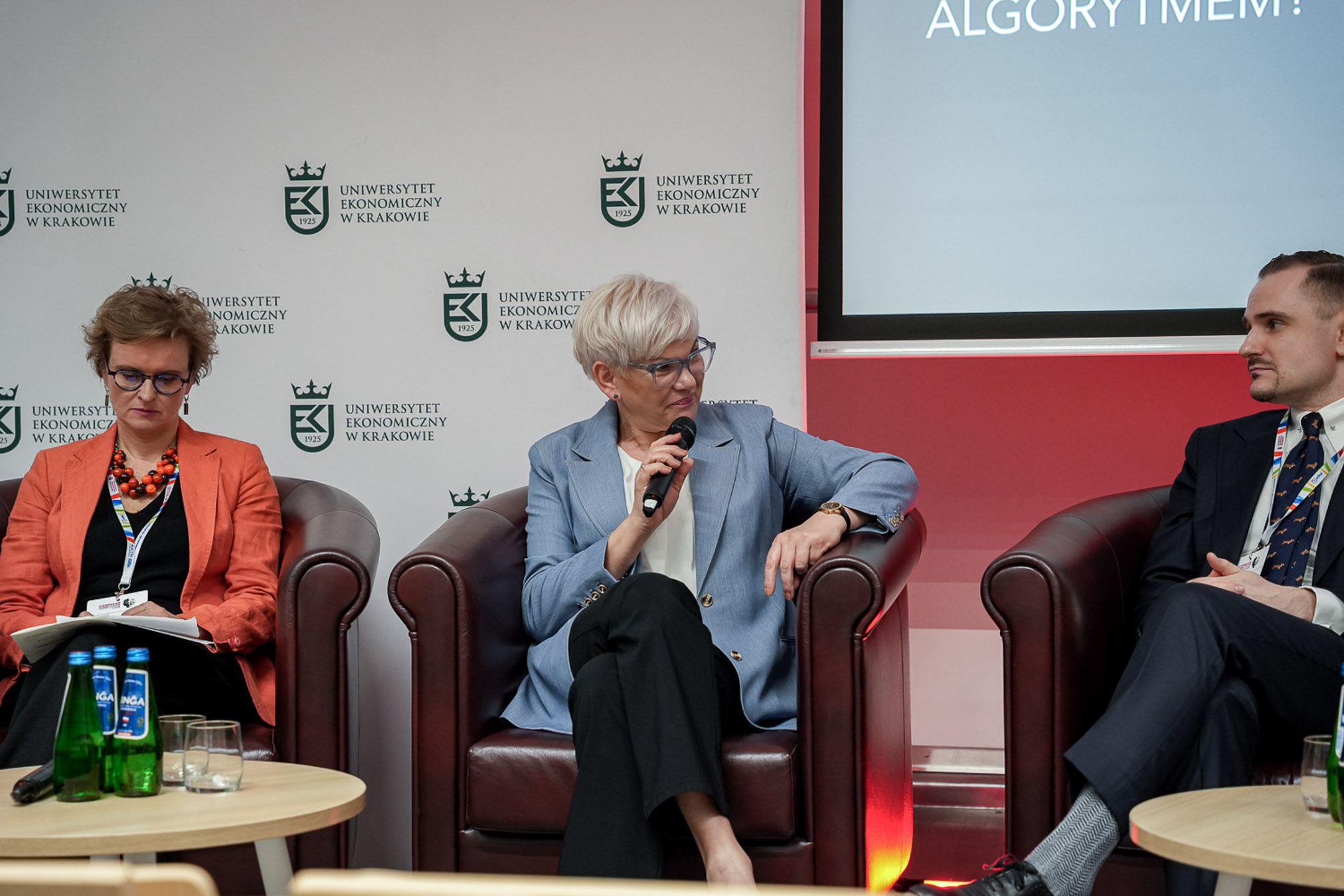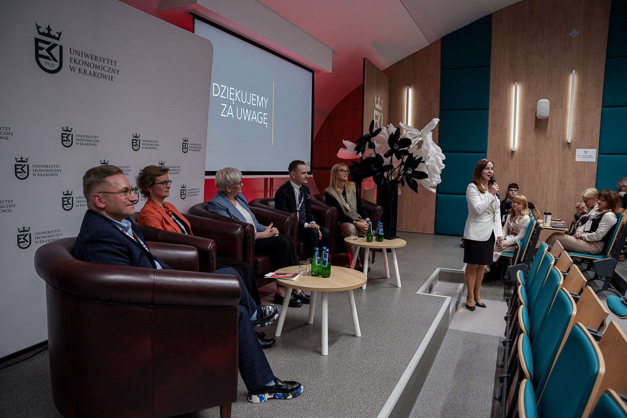 Zwieńczeniem Sympozjum była debata moderowana przez prof. Katarzynę Sanak-Kosmowską (UEK), która postawiła celne pytania o miejsce autorytetu naukowego w świecie algorytmów. Paneliści zmierzyli się z czterema kluczowymi kwestiami: